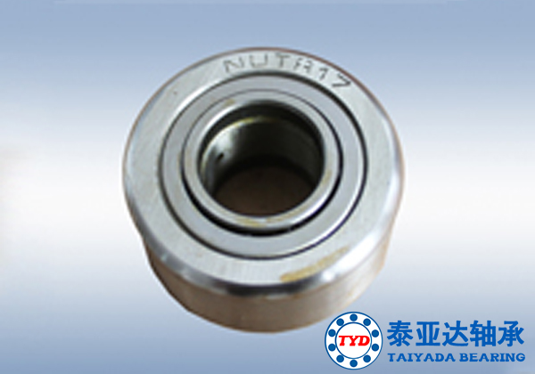 曲线滚轮轴承由一根作为滚子组内滚道的螺栓及一个厚壁外圈组成,螺栓轴的台肩及压在螺栓上的端面挡圈组成了外圈沿两个侧面方向的引导面。当曲线滚轮在平滚道或凸轮盘上运动时,由于外圈的弹性变形,滚轮的内应力加大。因此应用于此种工作情况下的额定负荷选择作为曲线滚轮一栏。